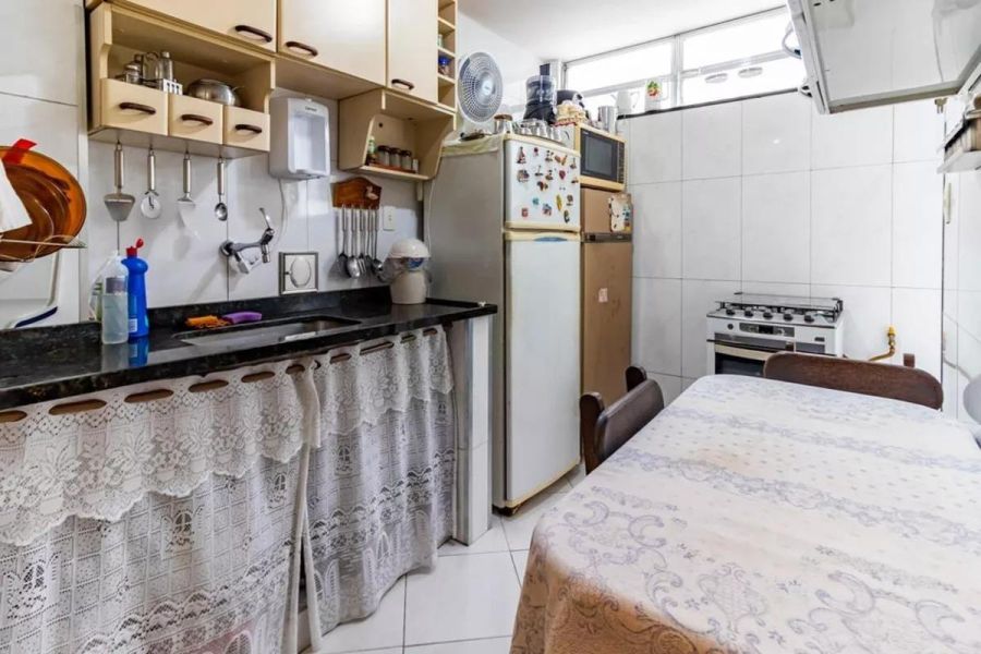Com uma área privativa de 88m², o apartamento oferece uma planta bem distribuída e superior à média da região para unidades de dois dormitórios. O imóvel conta com uma sala ampla, dois banheiros e cozinha em conceito americano, integrando ambientes e otimizando o espaço de convivência. A presença de sistema de água quente agrega conforto e valor à unidade, que dispõe ainda de uma vaga de garagem garantida.