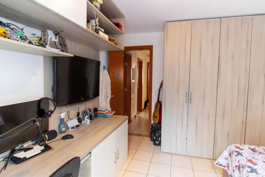 A unidade conta com varanda e sacada equipada com churrasqueira, além de área de serviço completa com dependência de empregada. O Condomínio Town House oferece uma infraestrutura de lazer e segurança de alto padrão, incluindo: