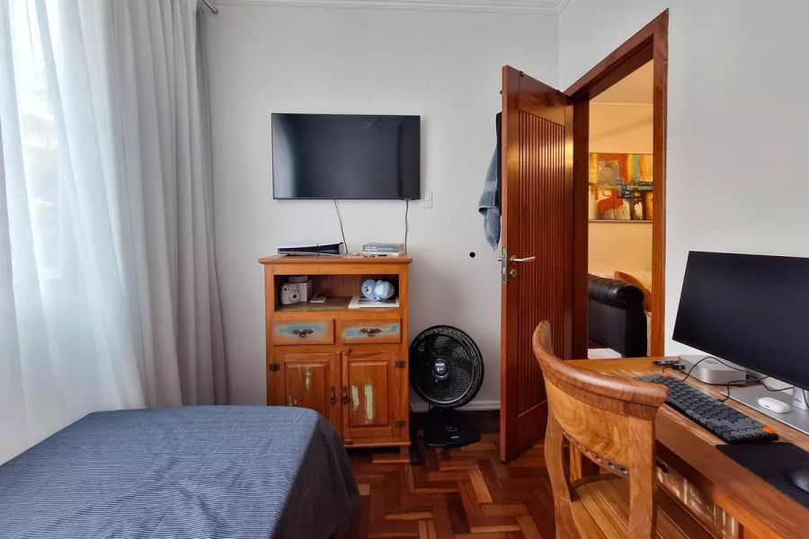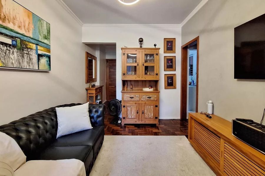 Com uma área privativa de 77 m², o imóvel está situado no terceiro andar e apresenta uma planta racional e bem distribuída. A unidade conta com dois dormitórios amplos, uma sala de estar versátil e dois banheiros, incluindo uma área de serviço completa com banheiro auxiliar. Um dos grandes diferenciais deste anúncio é que o imóvel é comercializado mobiliado, o que possibilita a ocupação imediata ou a rápida colocação no mercado de locação, otimizando o retorno sobre o investimento.