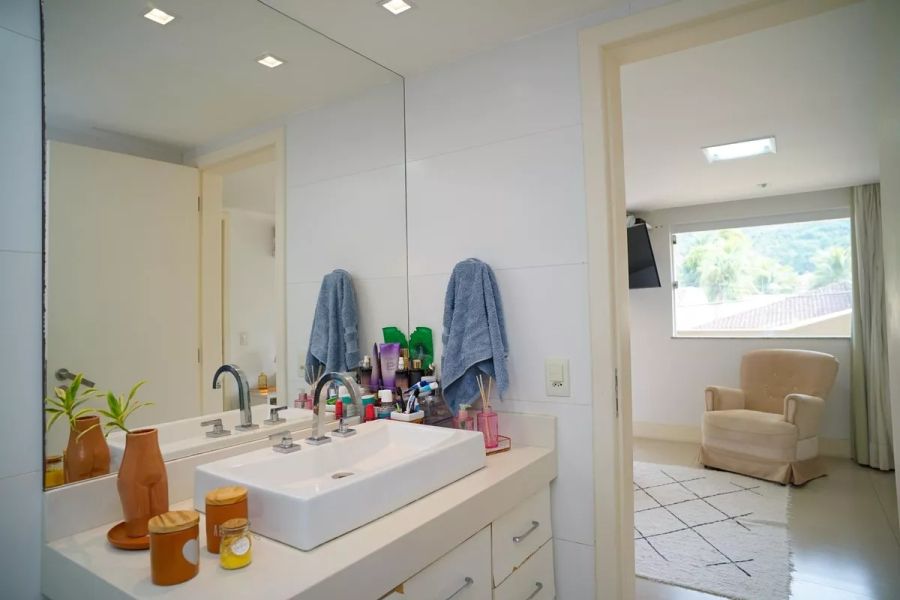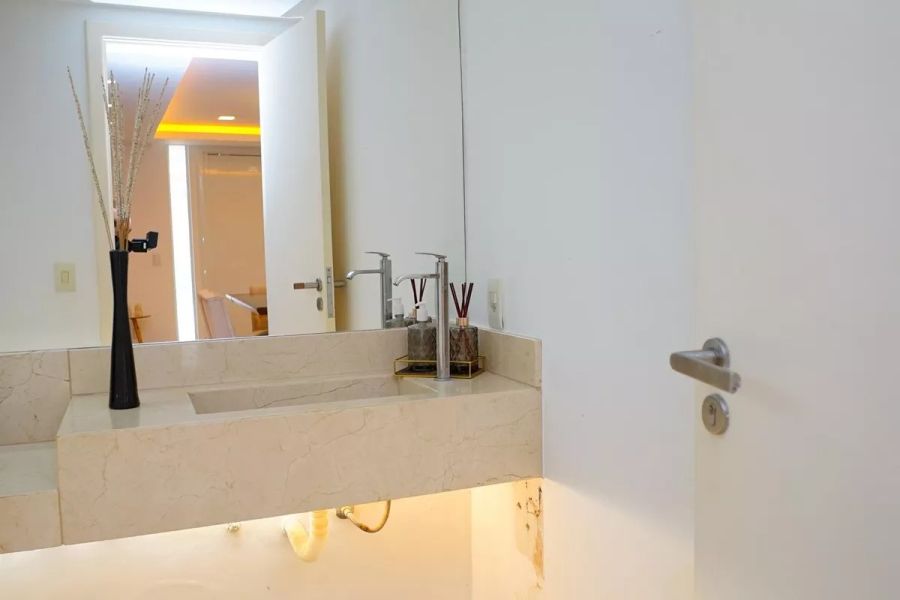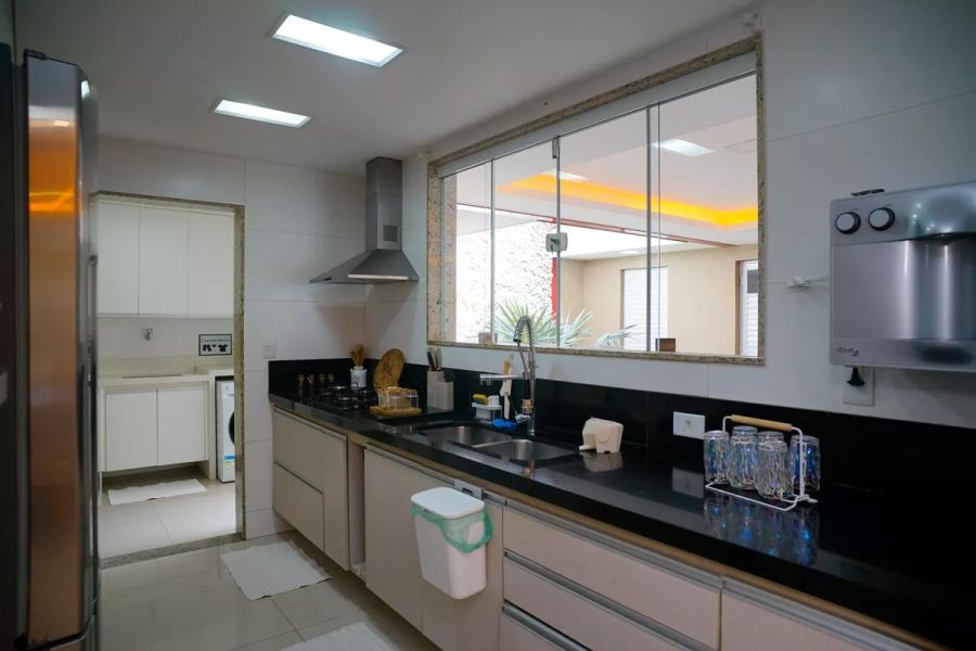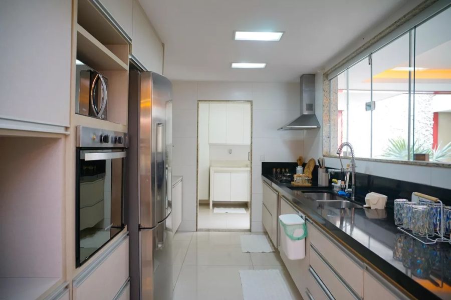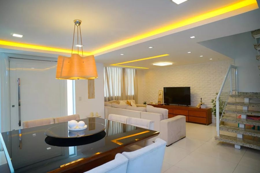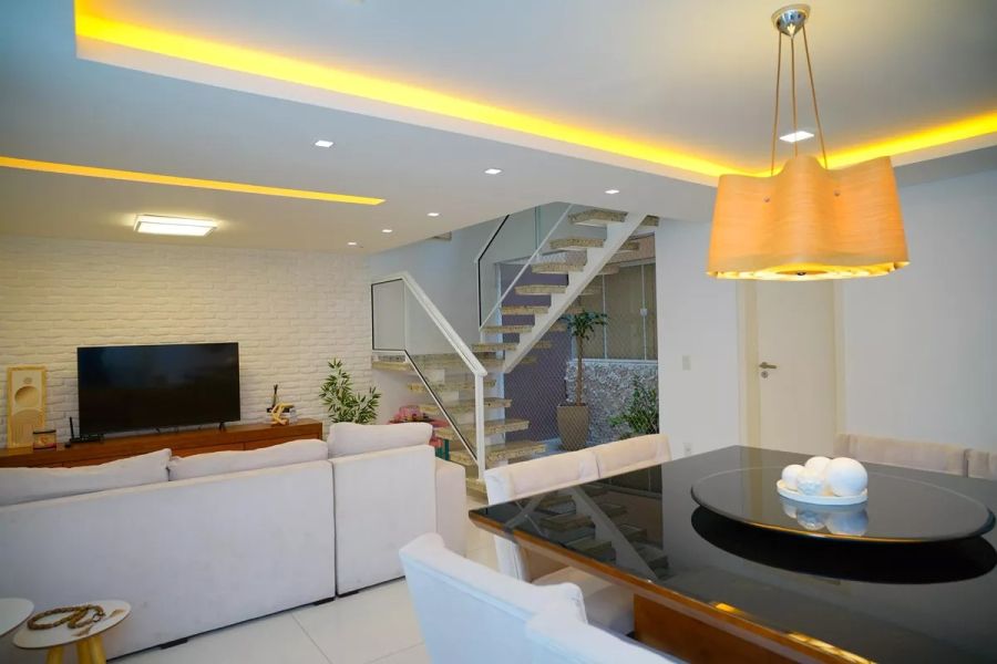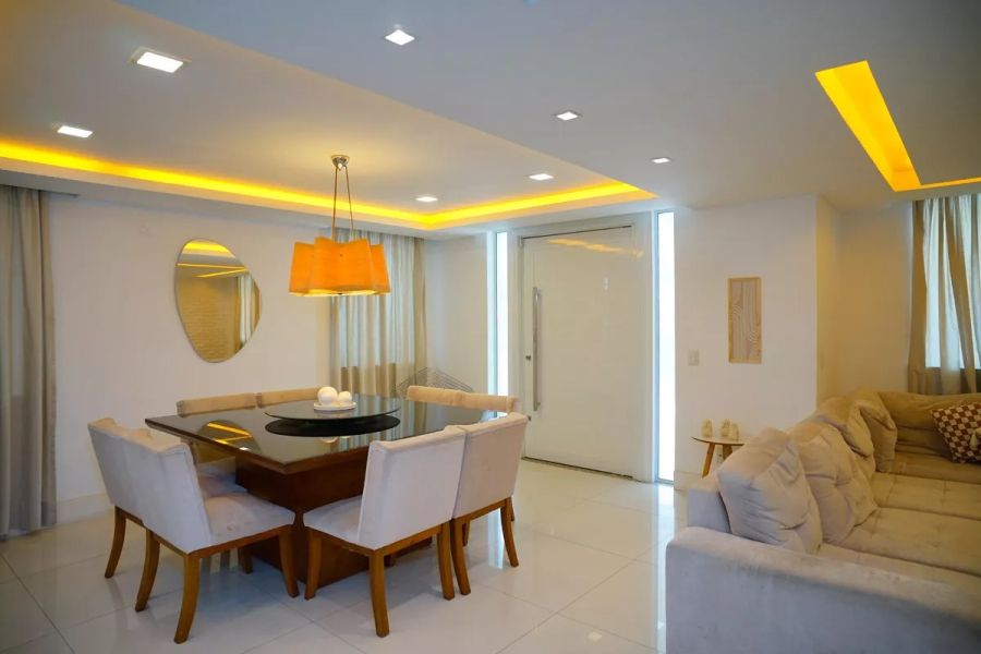 Excelente casa duplex de Alto Padrão com uma Área Total de 585m² e uma Área Construída 434m², com uma sala ampla com jardim de inverno, com 4 Suites (quarto Master com Closet e varanda privativa), lavabo, cozinha ampla em porcelanato com divisórias em mármore, área técnica, lavanderia,quarto de serviço, piscina com cascata e iluminação indireta, ducha,sauna, área gourmet, cisterna,placa solar do Boiler e 3 vagas de garagem