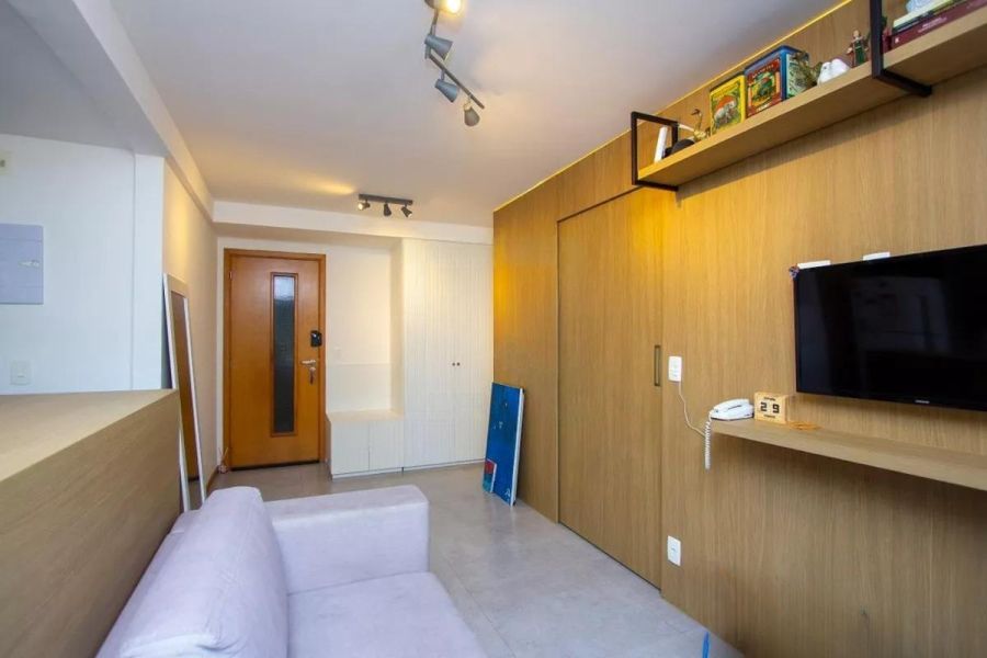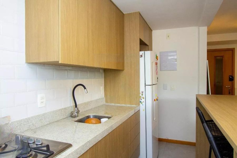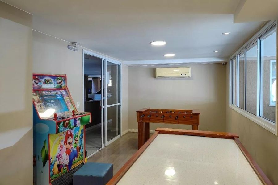 DescriçãoExcelente apartamento, totalmente modernizado e decorado com extremo bom gosto, composto por varanda confortável, sala, 2 quartos sendo 1 suite (foi aberto um quarto com o outro, se tornando 1, porém é algo reversível), armários nos quartos, banheiro social com blindex e armário, cozinha planejada, lavanderia. Condomínio com lazer (piscina e churrasqueira na cobertura, academia, brinquedoteca, salão de jogos, salão de festas, sauna) e portaria 24h.