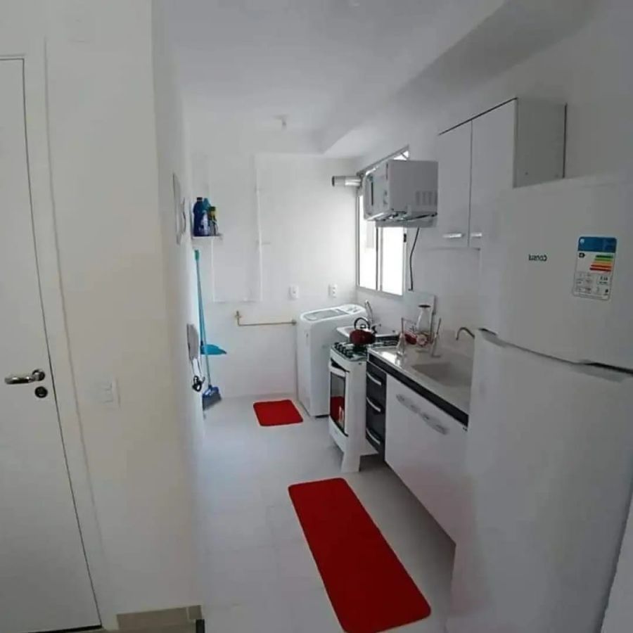 Localizado no segundo andar de um edifício de cinco pavimentos com elevador, o apartamento possui 45 m² de área privativa bem distribuídos. A planta contempla dois dormitórios, uma sala de estar funcional, banheiro social e cozinha em estilo americano, integrada à área de serviço. O imóvel conta com sistema de água quente e infraestrutura para internet banda larga, atendendo às demandas contemporâneas de conforto e conectividade.